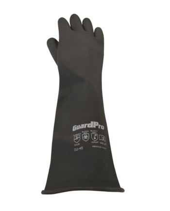 Guante resistente a los siguientes productos químicos: Metanol, n-Heptano, Hidróxido de sodio 40%, Ácido sulfúrico 96%, Peróxido de hidrógeno 30%, Amoníaco 25% y Formaldehído 37%; y a microorganismos como bacterias y hongos.